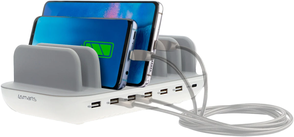 Bis zu 7 Geräte gleichzeitig aufladen mit nur einem Ladegerät. Die 4smarts Ladestation Office bietet eine beeindruckende Ausgangsleistung von 60 Watt und ist damit ideal für Büros mit vielen energieintensiven Geräten.