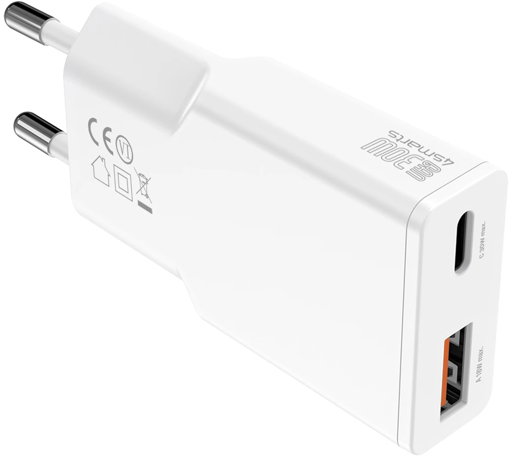 4Smarts Netzladegerät PDPlug Slim Duos 30W GaN 1C+1A Weiß