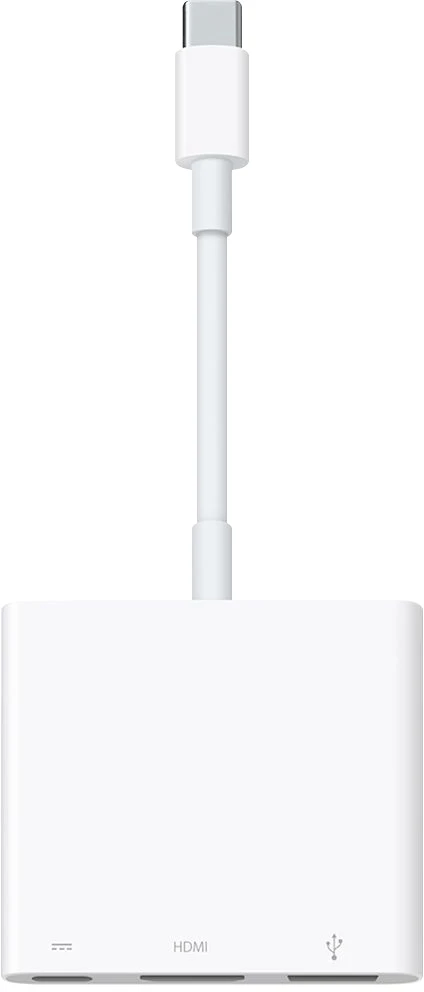 Mit dem USB‑C Digital AV Multiport Adapter kannst du deinen Mac, dein iPad oder dein iPhone mit USB‑C Anschluss an ein HDMI Display und gleichzeitig auch ein gängiges USB Gerät und ein USB‑C Ladekabel anschließen.
