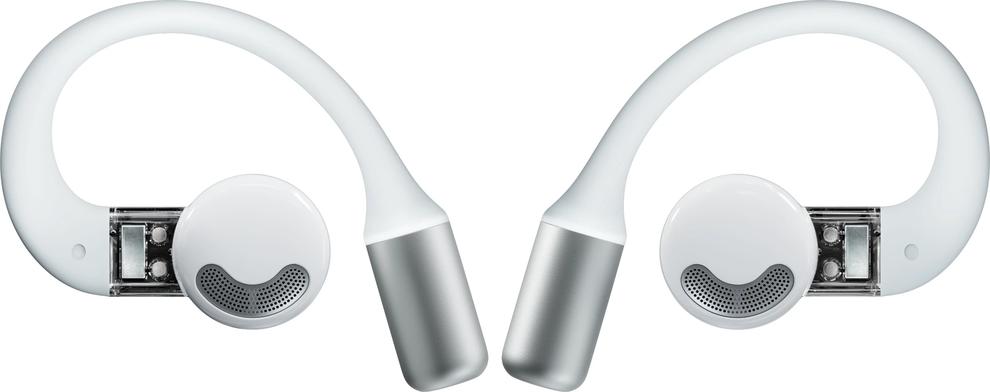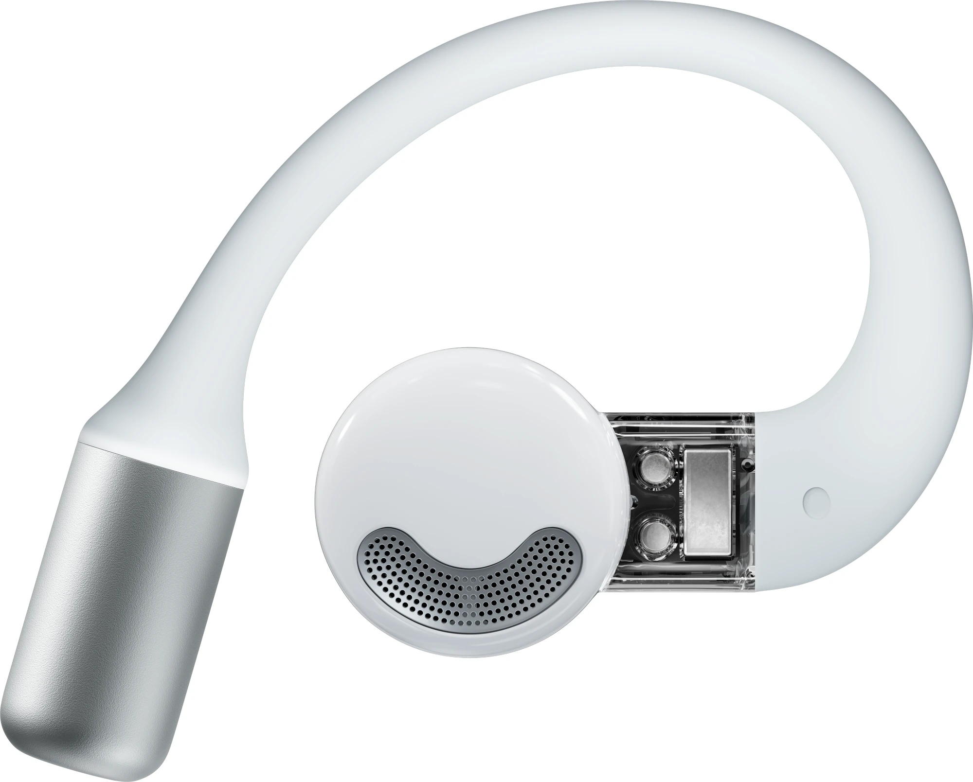 Perfekt ausbalanciert an drei Punkten für einen Sitz, der sich anfühlt, als wäre er gar nicht da. Von dünn zu dick gestaltet, ist der Ohrbügel super flexibel und bequem dank hautfreundlichem Silikonmaterial.